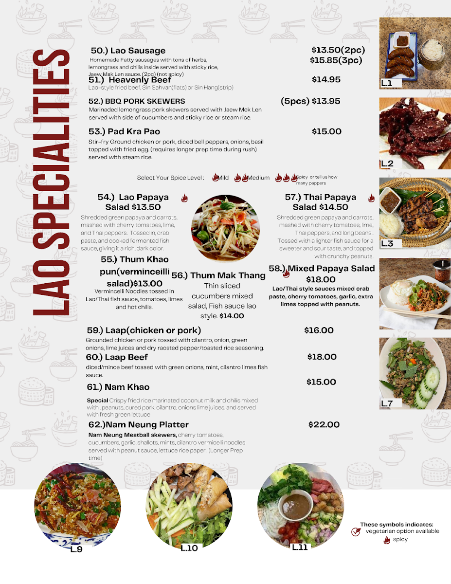 Welcome to Lao and Thai Spicy Noodle, a delightful Thai restaurant tucked away in South Elgin, IL. This charming eatery offers a vibrant culinary journey that brings the bold flavors of Laos and Thailand right to your plate. Whether you're seeking a casual lunch spot or a cozy dinner destination, this restaurant captures the heart of Southeast Asian cuisine.