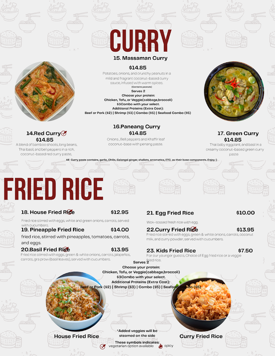 Customer reviews resonate with authenticity, painting a picture of heartfelt connections over great food. As one diner, Mar Lew, noted, the green curry with chicken is “absolutely delicious and unique” - highlighting the restaurant’s dedication to crafting flavorful dishes. Similarly, Chigirl2 reminisced about spring rolls bursting with flavor and how the Pad Thai left her craving more.