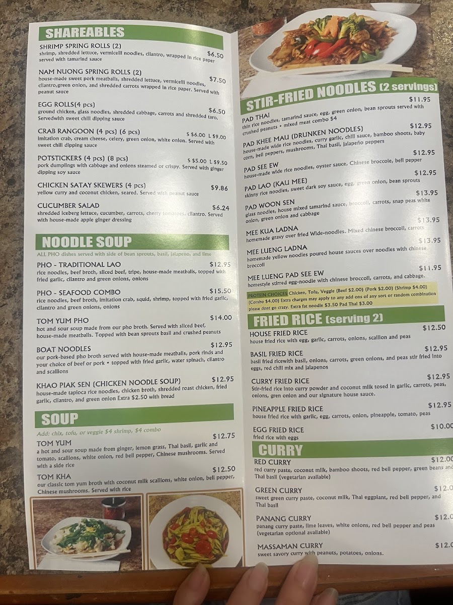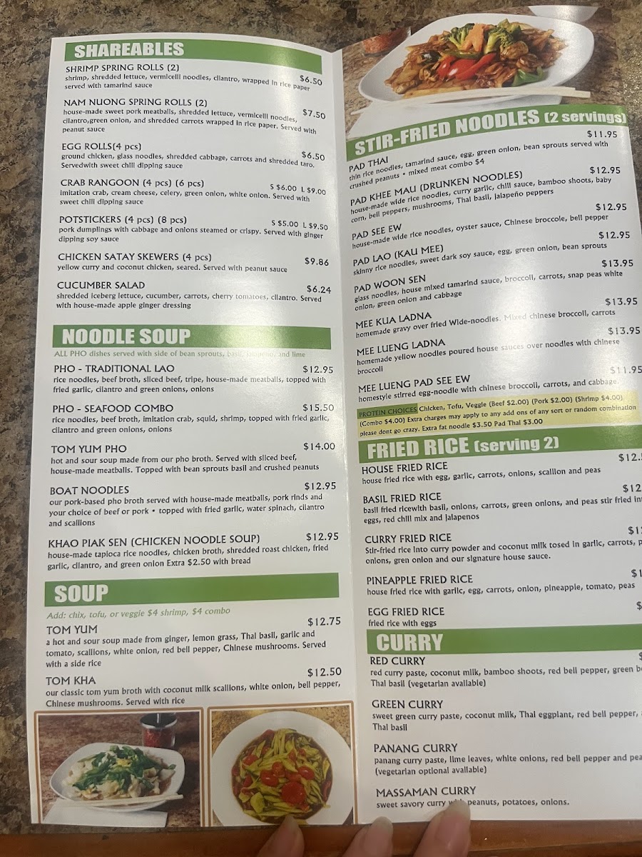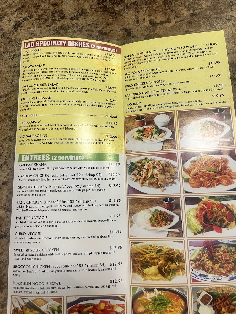 At Lao and Thai Spicy Noodle, the menu shines with a variety of offerings that cater to diverse palates. Indulge in the popular Pad Thai, known for its savory balance of flavors, and if you’re in the mood for something spicy, the Basil Chicken comes highly recommended – chicken breast stir-fried to perfection with garlic, mushrooms, and a kick of chili sauce. The dish is richly aromatic, with fresh Thai basil elevating the experience to a new level.